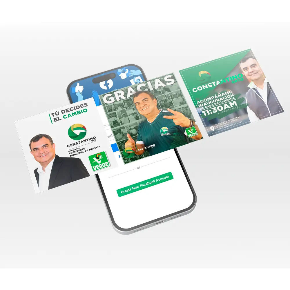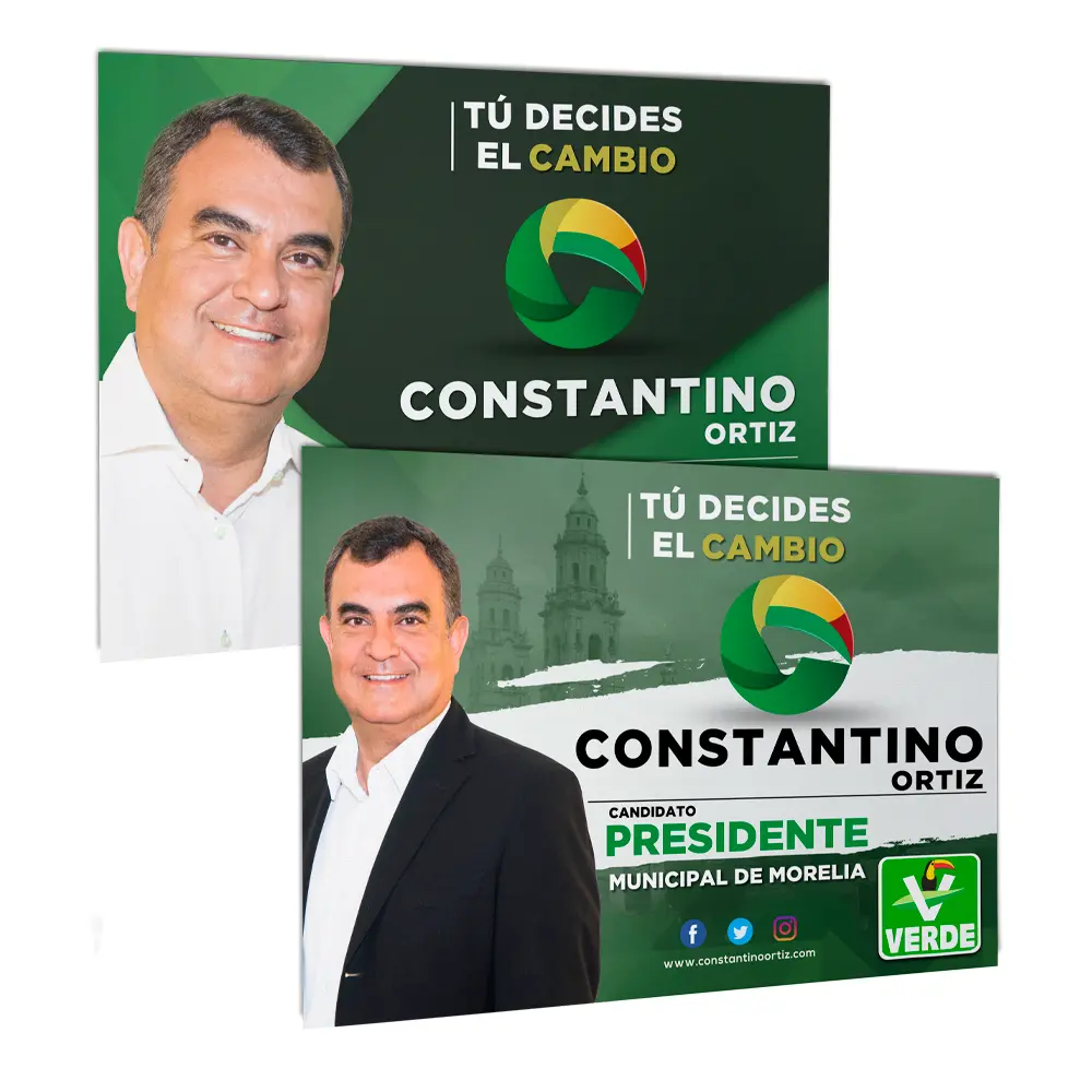 El diseño del logo y el branding son clave para crear una identidad visual coherente, en la campaña para Constantino Ortíz, diseñamos un logo el cual reflejaba sus valores y visión, asegurando que cada pieza de material promocional estuviera alineada con su imagen de marca.