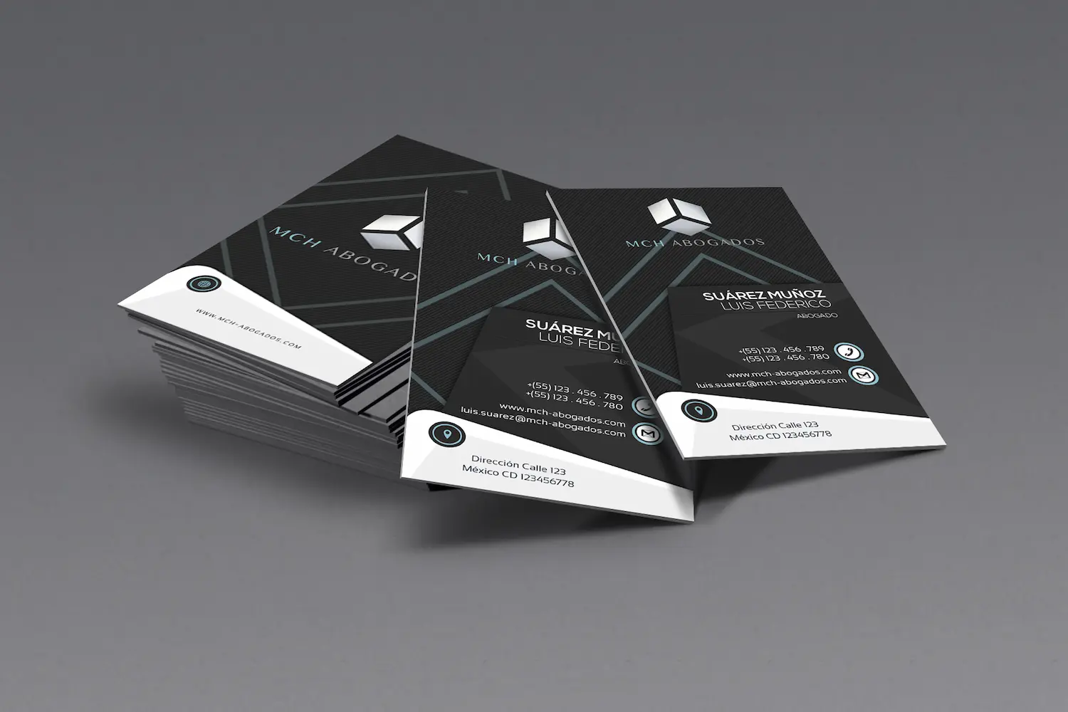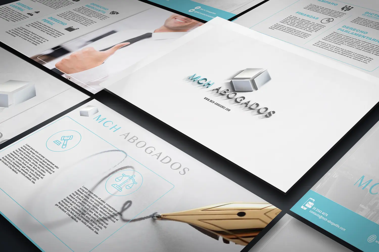 Los gráficos creados para MC&H Abogados combinan diseño y claridad, ofreciendo una representación visual que resalta la identidad y servicios del bufete.