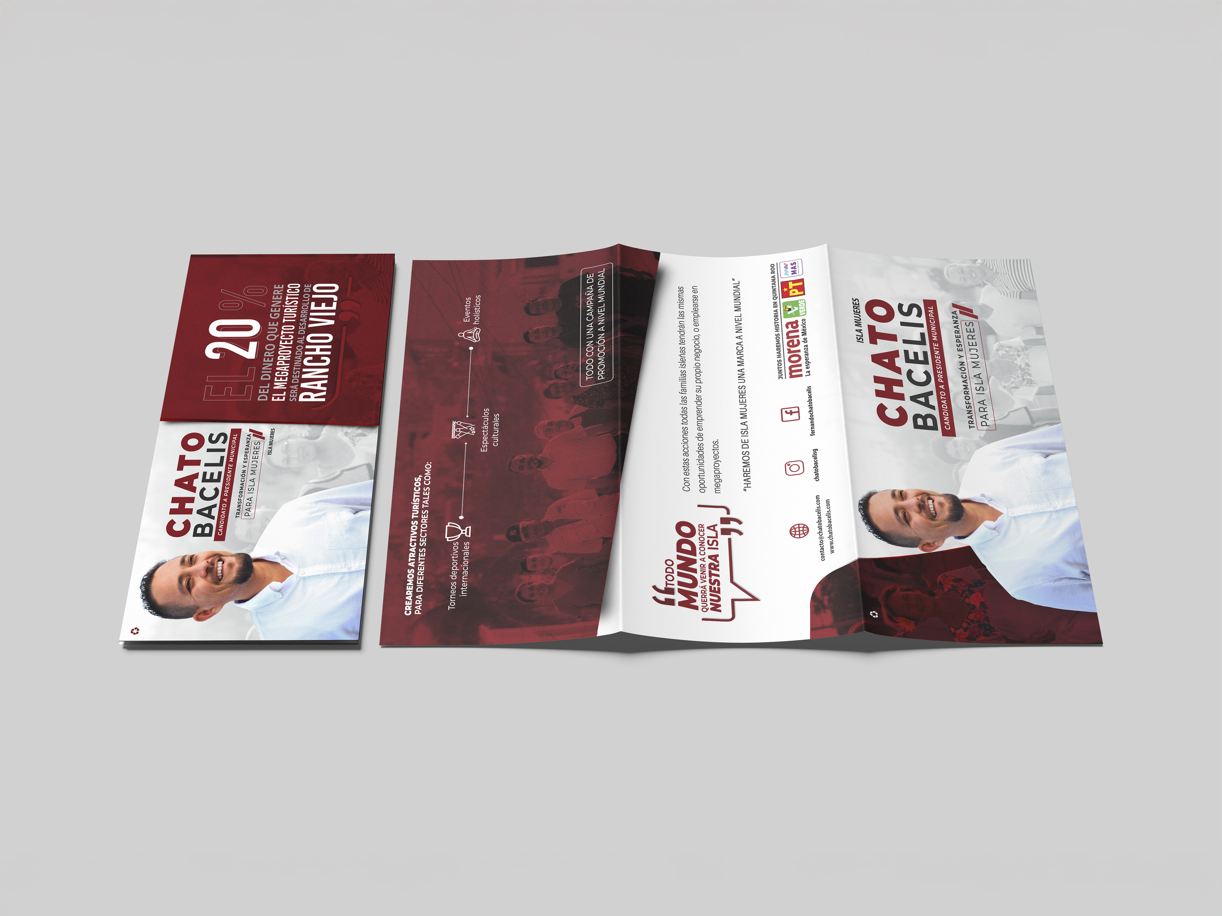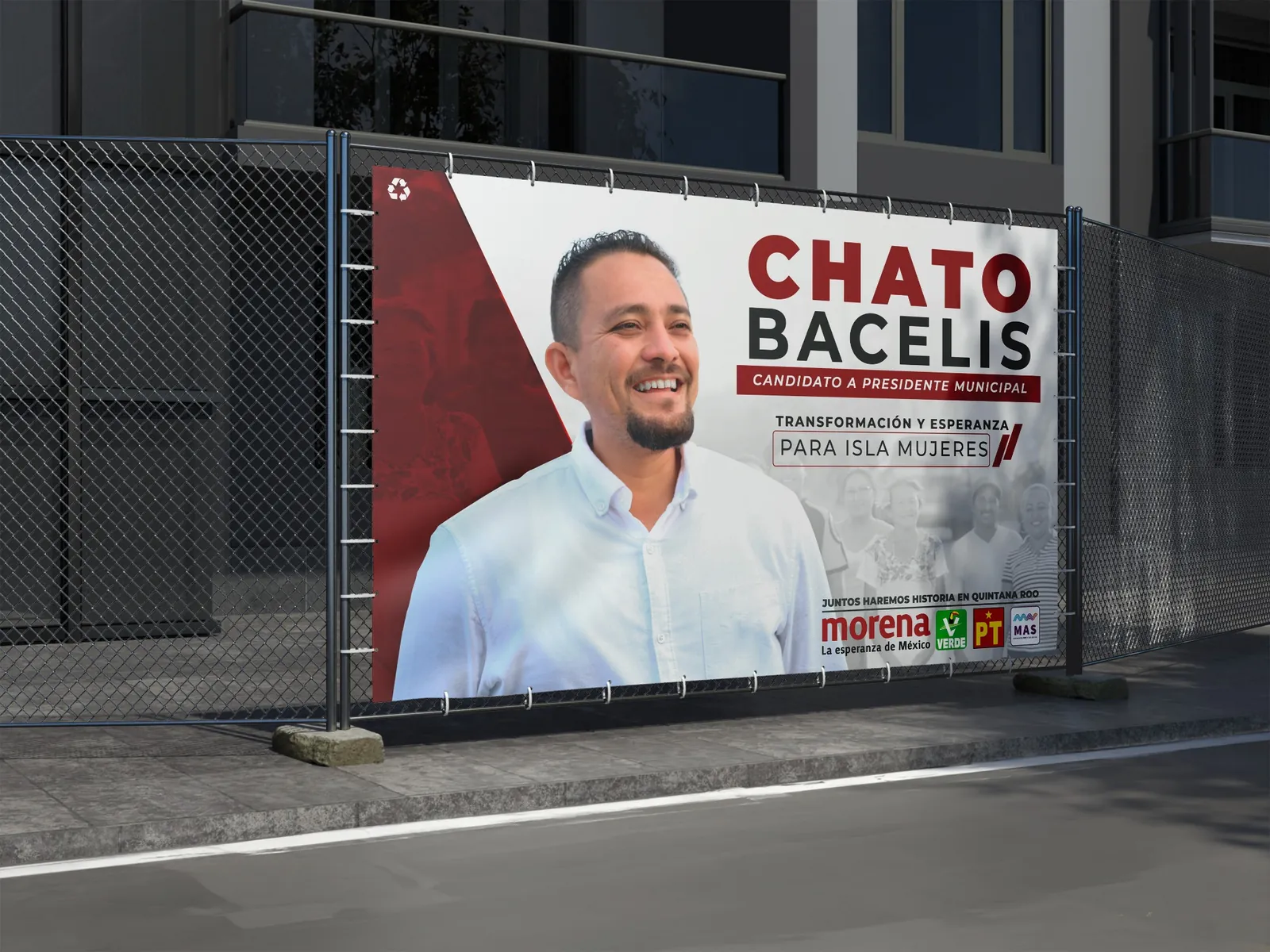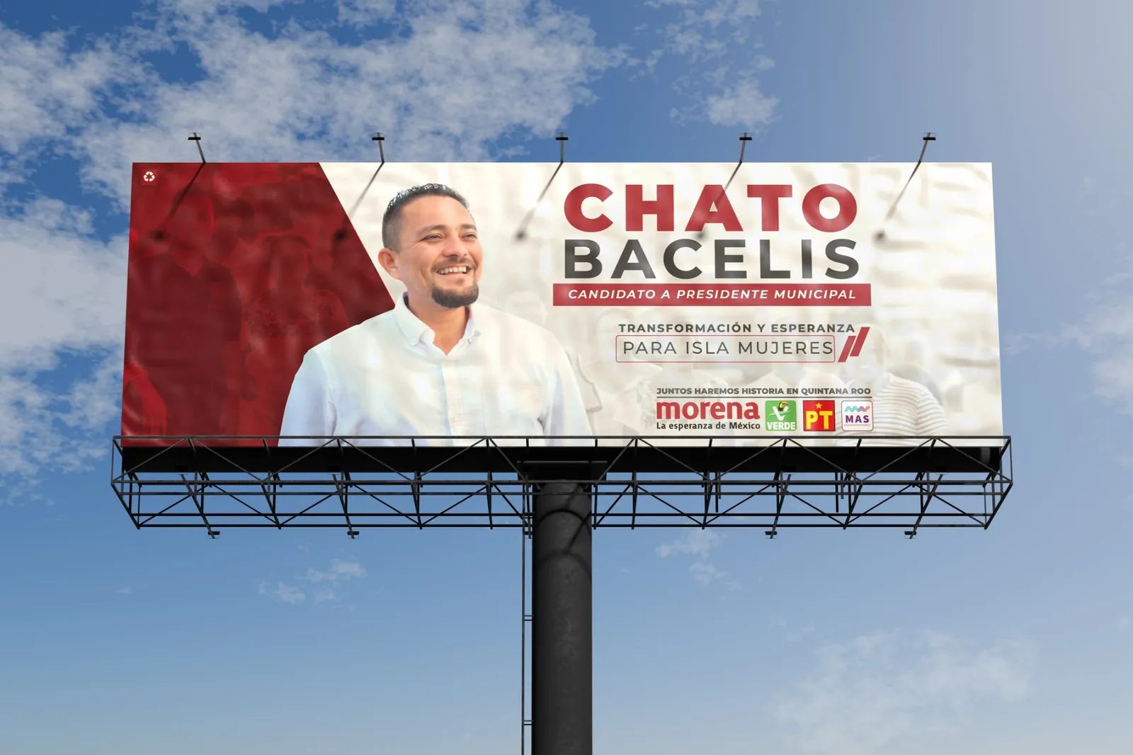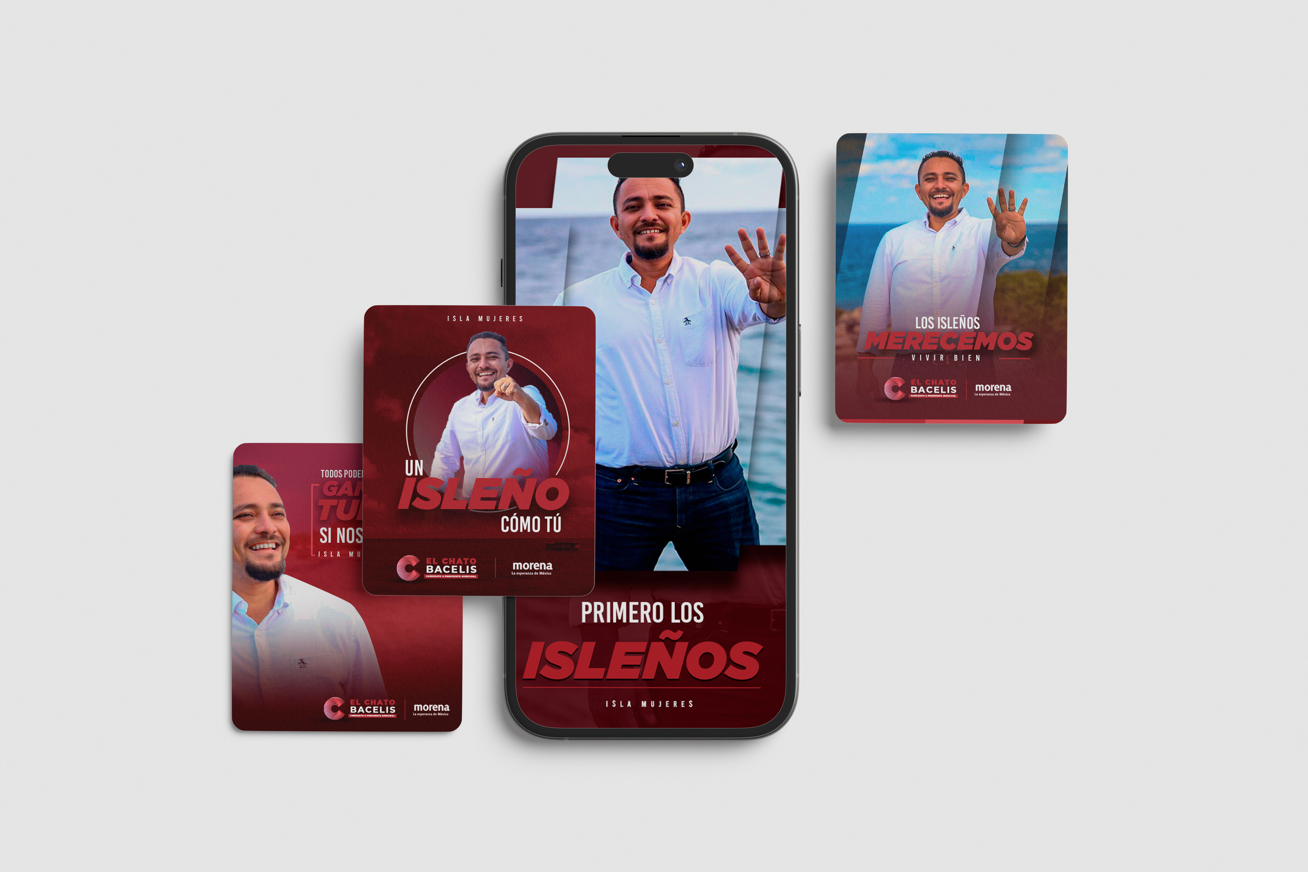 En la campaña de Chato Bacelis como candidato a la presidencia municipal de Isla Mujeres por Morena, desarrollamos una estrategia integral que incluyó video, redes sociales y material impreso.