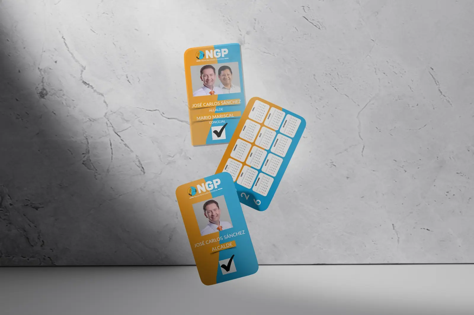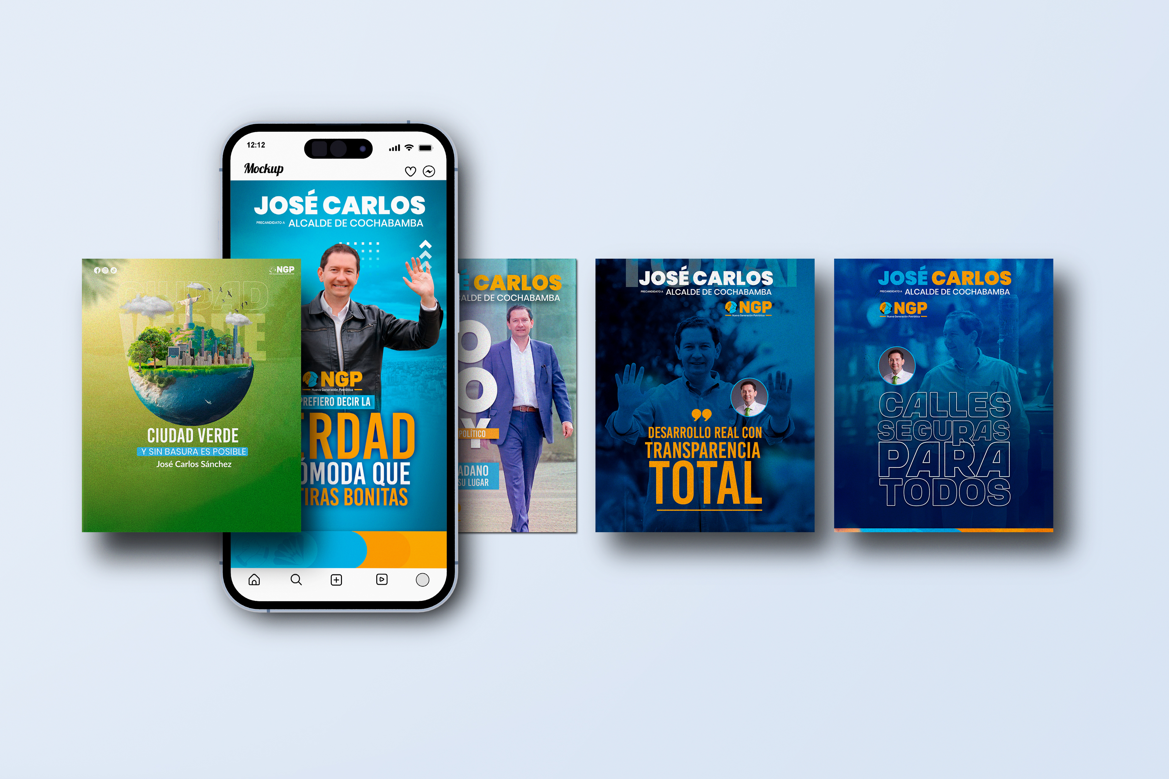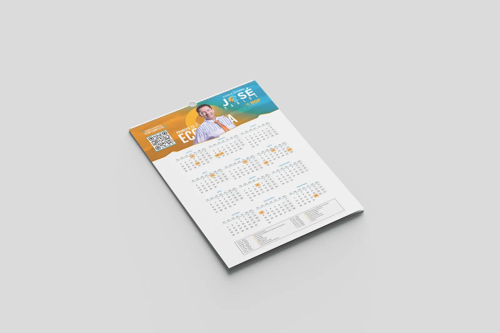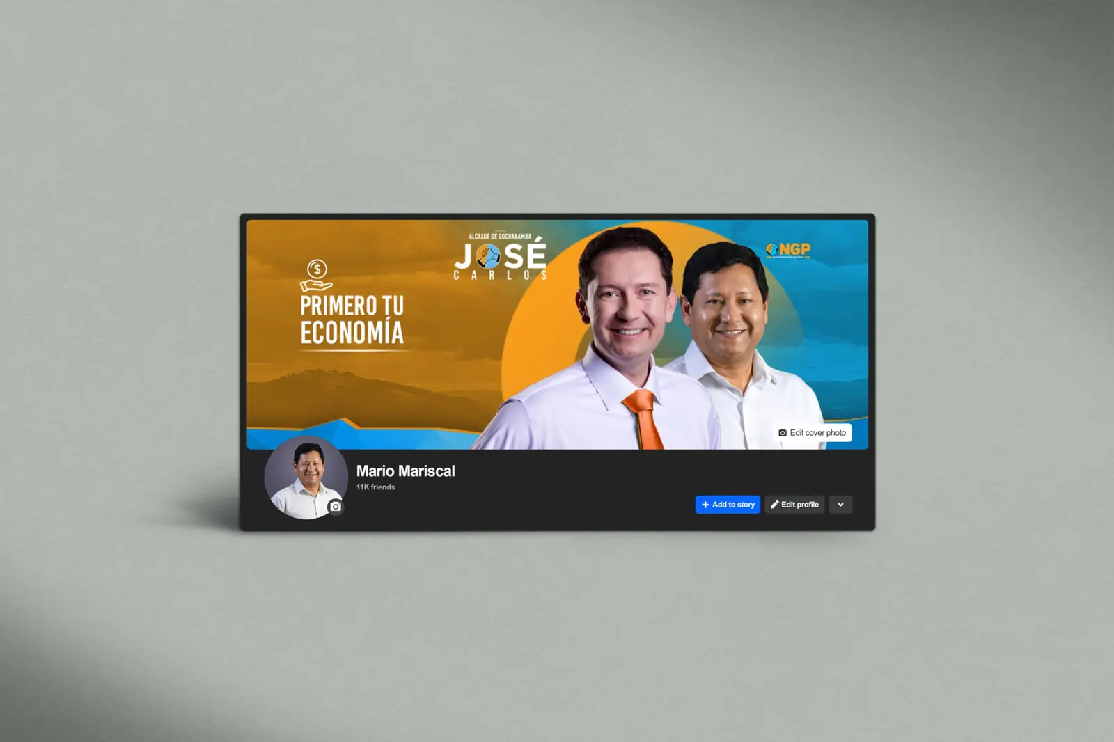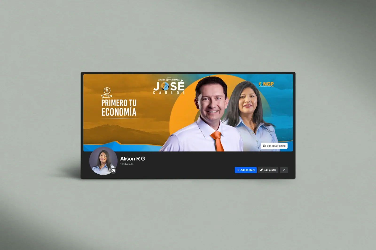La propuesta visual se desarrolló a partir del eje “Primero tu economía”, posicionando el tema económico como mensaje central de la campaña. La composición utiliza los colores del partido NGP —azul y naranja— para reforzar la identidad política y generar un contraste visual de alto impacto.