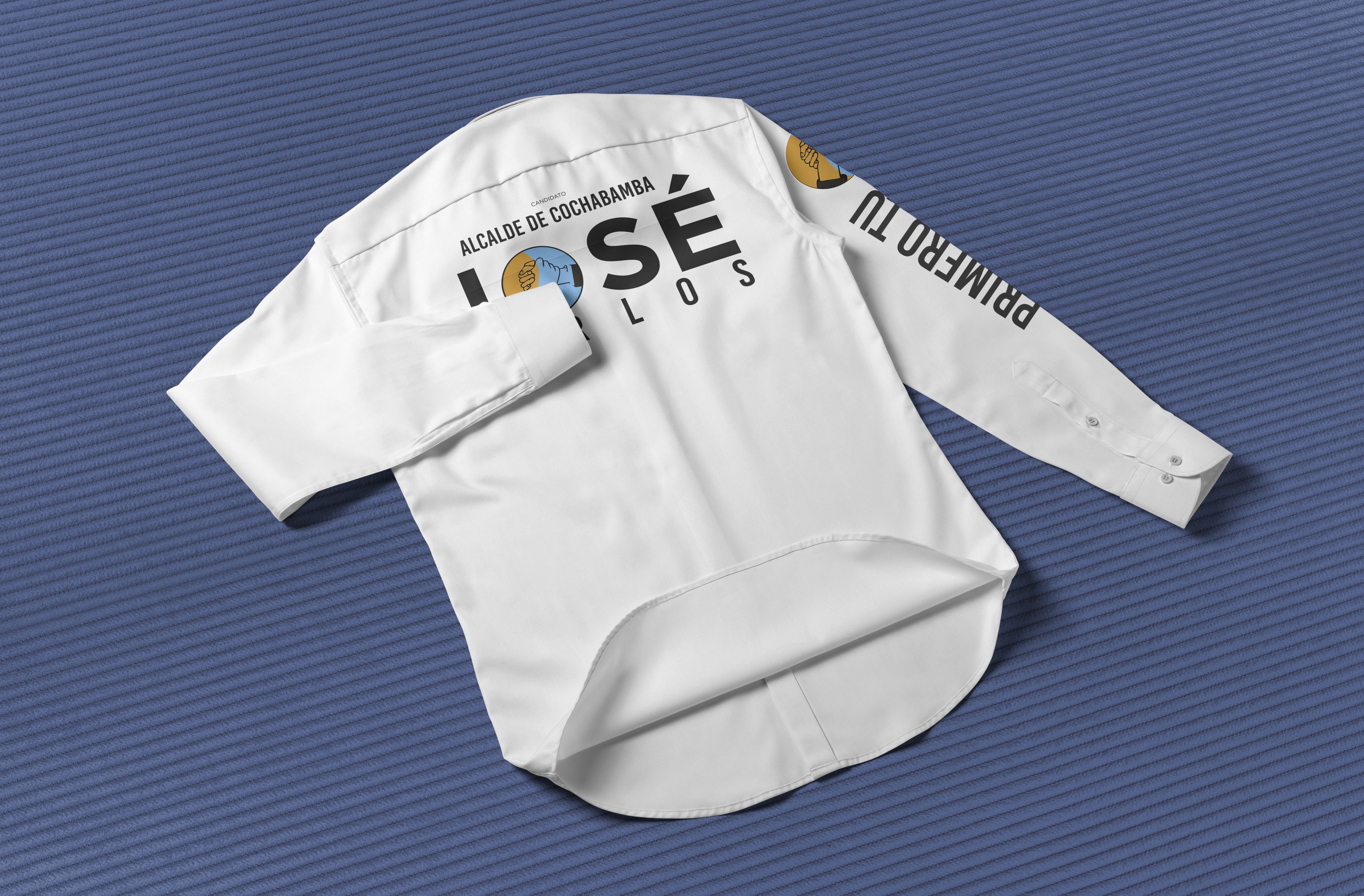 Se diseñó una camisa oficial de campaña para el candidato, aplicando la identidad gráfica del proyecto para fortalecer la imagen pública y generar reconocimiento visual durante actividades, recorridos y eventos ciudadanos.