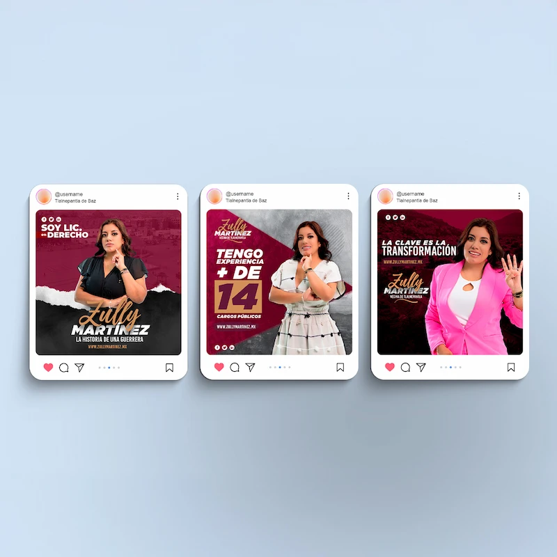 En redes sociales, creamos una narrativa auténtica y cercana que permitió a Zully interactuar con sus seguidores y ampliar su base de apoyo. Los contenidos fueron diseñados para inspirar conversación y fortalecer el compromiso con su candidatura.